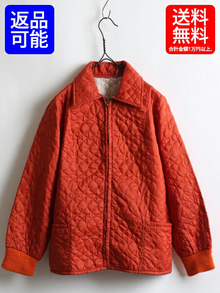 60's ★ ブランド不明 フルジップ ライト キルティング ナイロン ジャケット ( メンズ 男性 XS程 ) 60年代 ビンテージ 古着 オレンジ 上着| 【US古着】【古着】中古 アメリカ古着 古着屋 ジャンパー アウター 橙 橙色 ブルゾン ライトアウター キルティングジャケット
