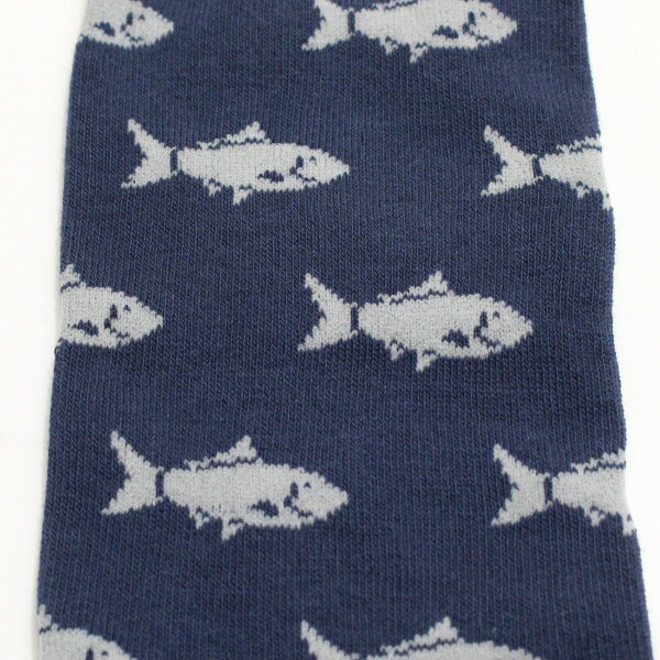 ネイビー地にグレーが爽やかな、お魚柄のソックス。
