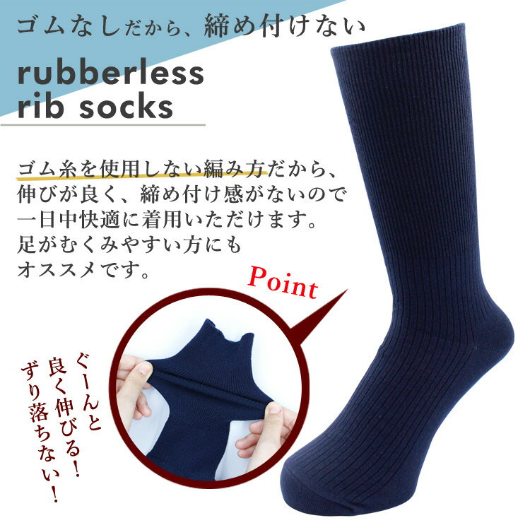 ゴムなしタイプなので良く伸び、足を絞めつけず一日中快適に履いていただけます。